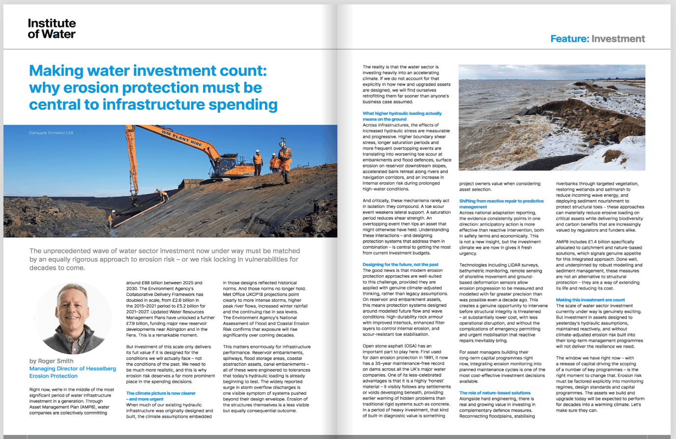 The UK water sector is entering a once-in-a-generation investment cycle. But are we designing for the conditions ahead - or the conditions behind us? The latest issue of the Institute of Water magazine features an article by Roger Smith, Managing Director of Hesselberg Erosion Protection.